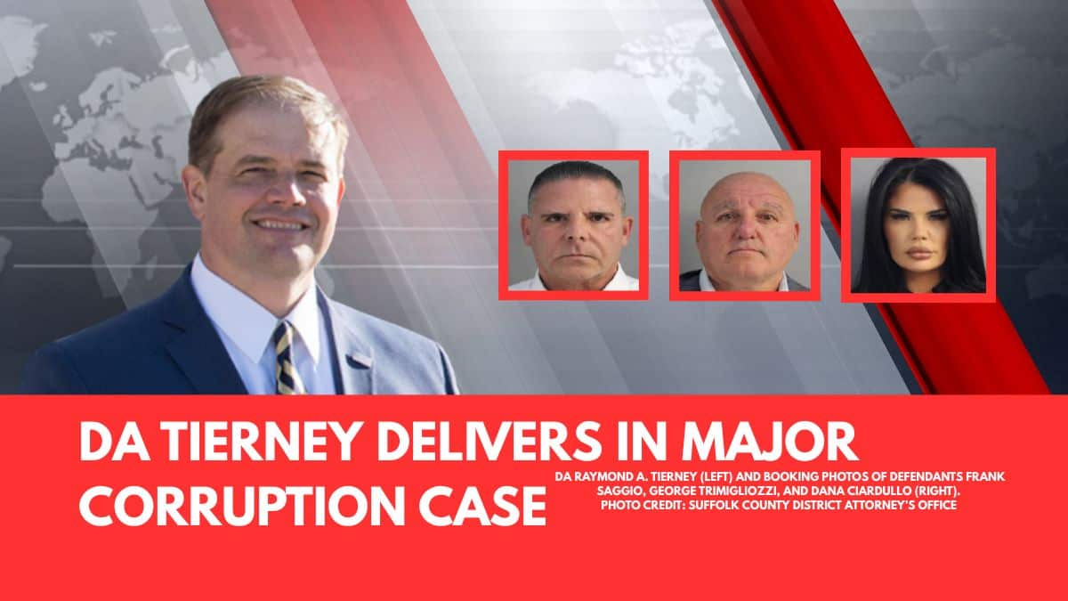 The case adds to Tierney’s growing list of high-profile corruption prosecutions, reinforcing his message that “no one is above the law” in Suffolk County.
