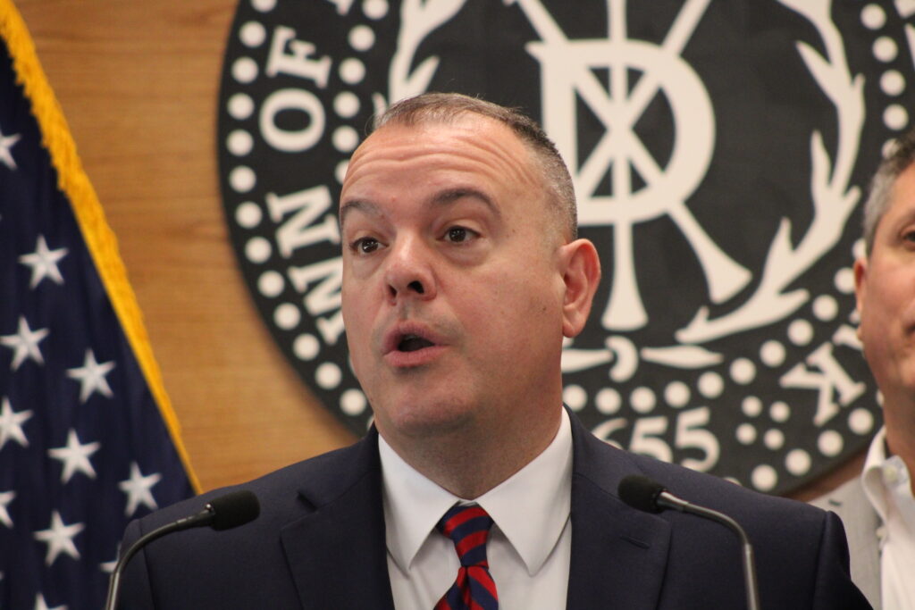 “Verizon has been resistant to coming into the Town of Brookhaven for a variety of reasons, predominately the size,” said Town Supervisor Dan Panico (R-Center Moriches) at Town Hall, joined by the entire six-member Town Council. Brookhaven is the largest municipality in the entire state by total area, encompassing about 259.43 square miles of land and another 272.11 square miles of water.